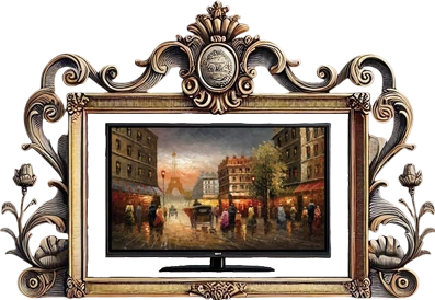 телевизор как картина спрятать телевизор, картина поднимается вверх открывается телевизор, за картиной телевизор в багетной раме маскировка телевизора в интерьере, телевизор в багете багетная мастерская в Москве |