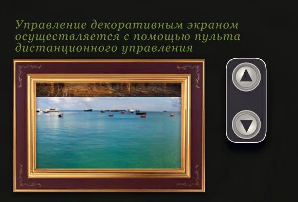 мастеров, но стоит нажать на кнопку пульта, и полотно плавно убирается вверх, открывая зрителям экран плазменной панели или вмонтированный в